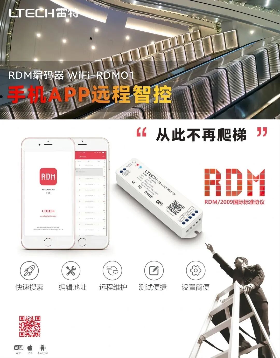 被誉为“改写DALI发展史”、荣获2022年阿拉丁神灯奖“最佳技术奖”的雷特NFC全指令近场编程DALI电源,在传统调试方式的基础上,实现技术突破增设通过NFC近场编程的极简方法,可对电源做参数设置:如编辑调光接口/电流/DALI地址/群组/场景等参数等,可提前做好预设,让工程落地更便捷高效。