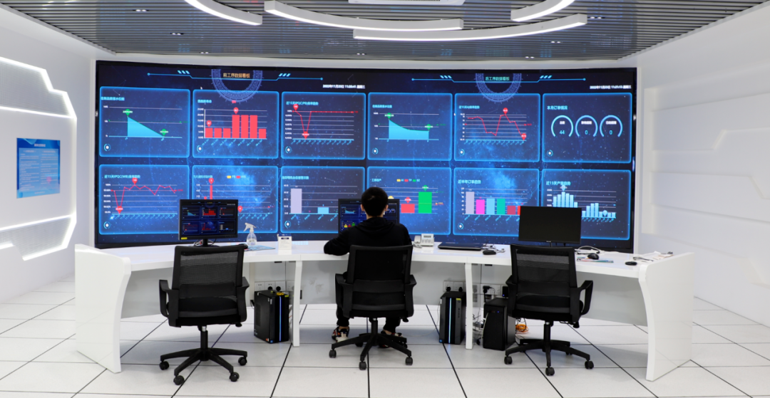 ▲国星光电数字化智能监控中心,工作人员正在实时监控各项经营生产数据,产线的运行状态和生产效率一目了然。