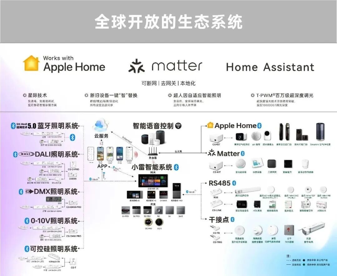 7月8日 赢得了现场媒体及专业来宾的高度关注 支持1000K-20000K的色温调节 对所处色温的色点进行上下调节 使色点与黑体线的距离Duv值发生改变,处于理想位置 实现可调光谱算法,达到自然光效 本次展会中,设有多个沉浸式体验空间 让来宾可以亲身感受健康照明的魔法 RGBCW毫秒级动态光影长廊 情绪光主题咖啡空间 百态光效一手智控 重塑智能家居美学 摩德纳·超级智能面板 迪拜·超级智能旋钮 全面拥抱开放生态 缔造尊重用户选择的智能家居方案 小雷获评筑梦品牌 共促产业融合发展! 雷特自2003年创立,是中国最早一批致力于LED照明控制领域的企业,更是中国照明智控领域首家A股上市公司。其发展出照明智控全品类产品线:Xiaolei小雷智能家居、LTECH LED控制器、LTSYS智能电源,持续为全球客商提供智能照明解决方案,为智能照明发展奉献力量! 小雷智能家居,是一家以智能照明为核心、深耕智能家居领域的科技品牌,拥有独立研发与自主生产的强大实力,缔造具有超群设计及硬核技术的前沿产品,拥有超全系列智能开关、智能电源、智能照明、生态组件等产品,致力于打通蓝牙无线协议和照明控制协议的应用。自构建的物联网平台L-Home (小雷智家),与全球三大开放生态:Apple Home/Matter/Home Assistant对接,实现高度定制的智能家居方案,为用户创造更加智能、舒适、安全、节能的家居生活环境!