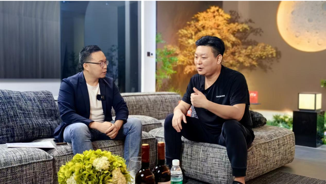 ▲大照明全平台执行总裁唐斌(左)对话皓逸智能总经理陈坤斌(右)。